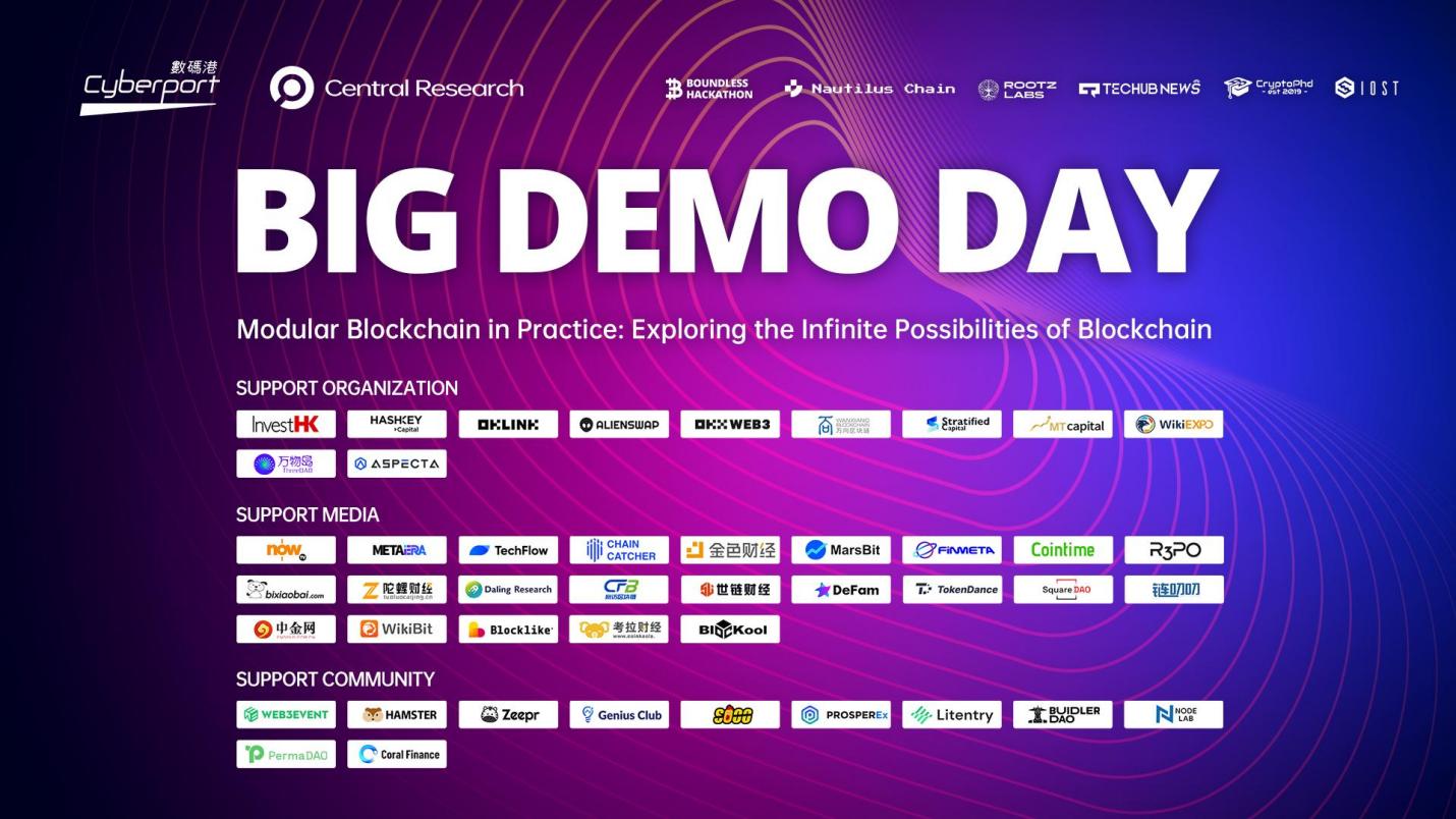 Co-organized by Hong Kong Cyberport and Central Research, with the collaboration of BOUNDLESS HACKATHON, Nautilus Chain, Rootz Labs, Techub News, CryptoPhd, IOST, and supported by institutions such as InvestHK, Hashkey Capital, OKLINK, AlienSwap, OKX WEB3, Wanxiang Blockchain Lab, Stratified Capital, MT Capital, ThreeDAO, WikiEXPO, ASPECTA, and media support from Hong Kong Now TV, Techub News, TechFlow, Chain Catcher, Meta Era, Jinse Finance, Marsbit, Finmeta, Cointime, R3PO, bixiaobai, Gyro Finance, Daling Research, Shilian Finance,DeFam, ToeknDance, Square DAO, DaoDaoMedia, WikiBit, Blocklike,etc, the 8th Big Demo Day took place on October 26th at Hong Kong Cyberport.