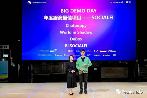 In the SOCIALFI category, Chatpuppy, World in Shadow, DeBox, and Bi.SOCIALFI received the Best SOCIALFI Project of the Year at the annual roadshow for their innovative social patterns and interactive experiences.